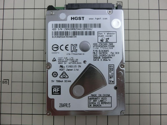 - Ο σκληρός δίσκος έχει ένα HGST Travelstar Z5K500 πάχους 7 χιλιοστά.