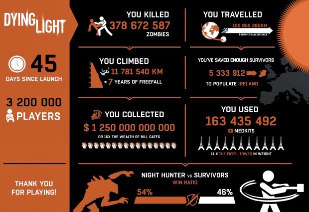 Η Techland δημοσίευσε ένα infographic για το Dying Light, το οποίο αποδεικνύει την ιδιαίτερα μεγάλη επιτυχία του τίτλου.