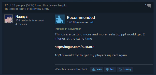 Όμως με κάθε καινούργια κυκλοφορία πληθαίνουν και τα σχόλια πως οι τραυματισμοί γίνονται όλο και περισσότεροι. Ας αφήσουμε όμως μερικούς χρήστες του Steam να μας πουν την άποψή τους πάνω στο θέμα μέσα από τις παρακάτω εικόνες.