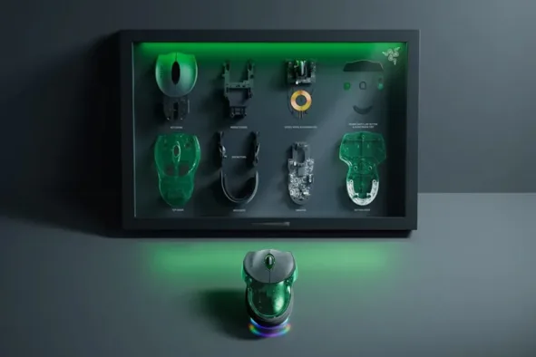 Η επετειακή έκδοση αντικαθιστά το χαρακτηριστικό διαφανές πράσινο πλαστικό με ένα βαθύ σμαραγδί φινίρισμα, ενώ τα πλήκτρα αριστερού και δεξιού κλικ είναι επενδυμένα με PU leather. Στο κάτω μέρος υπάρχει μια διακριτική λωρίδα RGB φωτισμού οκτώ ζωνών, ενισχύοντας τον συλλεκτικό χαρακτήρα του προϊόντος χωρίς να αλλοιώνει το κλασικό σχήμα του.