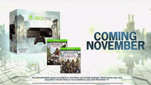 Το bundle, που θα αρχίσει να διατίθεται στις 2 Νοεμβρίου παγκοσμίως, θα μπορείτε να το αποκτήσετε με ή χωρίς το Kinect και θα περιλαμβάνει σε ψηφιακή μορφή το επερχόμενο Assassin’s Creed Unity αλλά και το περσινό Assassin’s Creed Black Flag.