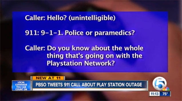 Το WPTV αναφέρει ότι ένας έφηβος αποφάσισε να καλέσει το 911 και να ρωτήσει: “Ξέρετε τι γίνεται με το Playstation Network;”