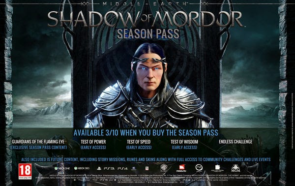 Η Warner Bros ανακοίνωσε το Season Pass για το Middle Earth:Shadow of Mordor το οποίο θα δίνει στους κατόχους έξτρα περιεχόμενο τόσο κατά την αρχική κυκλοφορία του παιχνιδιού όσο και τους επόμενους μήνες.