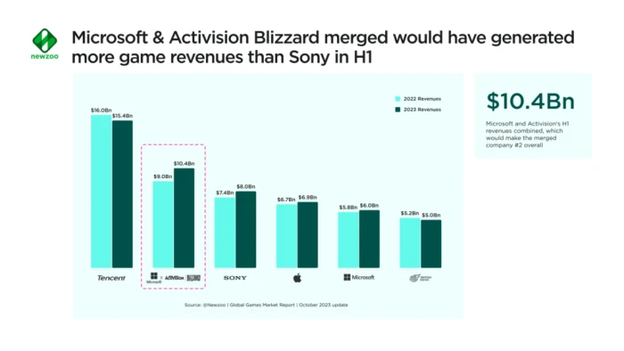 Η Activision Blizzard τερμάτισε στην έβδομη θέση, αλλά αν η τόσο σημαντική εξαγορά είχε γίνει πέρυσι, για παράδειγμα, τότε η Microsoft Gaming θα βρισκόταν στη δεύτερη θέση, ξεπερνώντας τη Sony και το εμπορικό σήμα PlayStation.