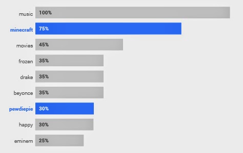 Σε ένα άρθρο στο Think With Google αποκαλύφθηκε ότι το Minecraft είναι στη δεύτερη θέση των όρων που αναζήτησαν περισσότερο οι χρήστες στο Youtube. Μέσα στην πρώτη δεκάδα βρίσκεται και ο PewDiePie.